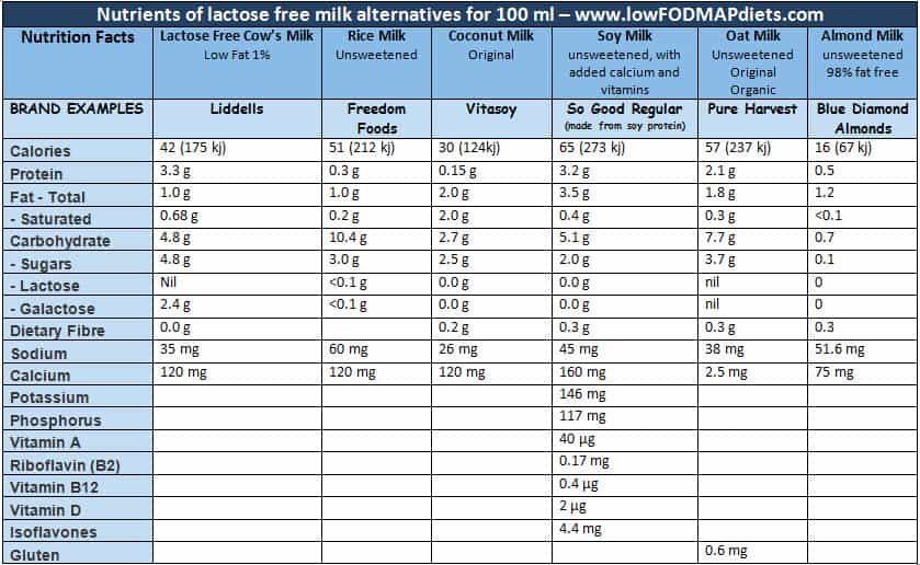 Low FODMAP Lactose Free Milk Nutrition Facts