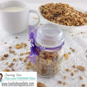 Delicious low FODMAP granola muesli, which can also be used as a base for desserts and snacks. If any of the ingredients is not of your taste or cannot tolerate, you can easily replace it.
