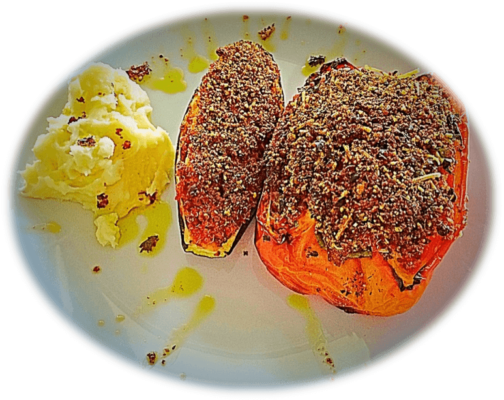 - Spoon the filling into the capsicum and zucchini